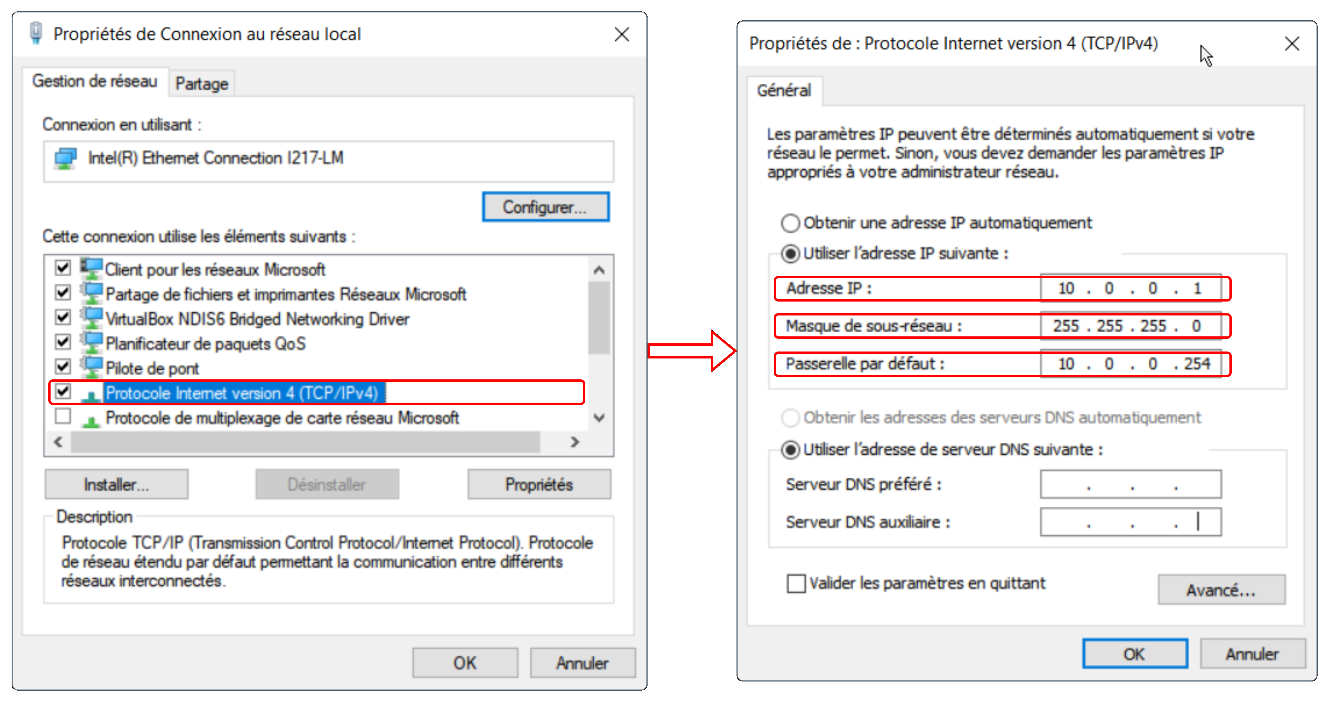 Avec une attribution d'adresse IPV4 statique, l'admninistrateur réseau doit configurer manuellement les informations réseau relatives à l'hôte.